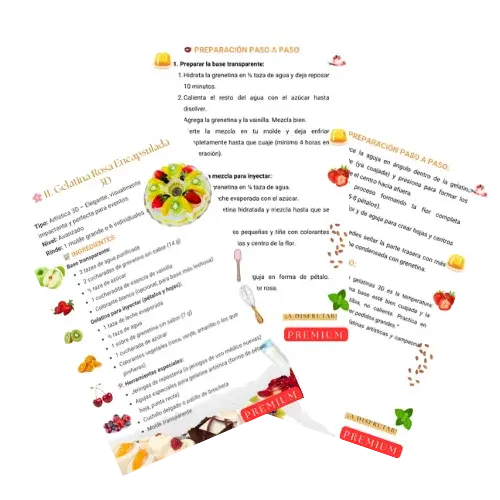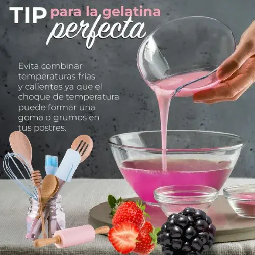 Incluimos un Kit de emergencia con soluciones rápidas para errores comunes como gelatinas que no cuajan o se rompen al desmoldar. ¡No estarás sola!